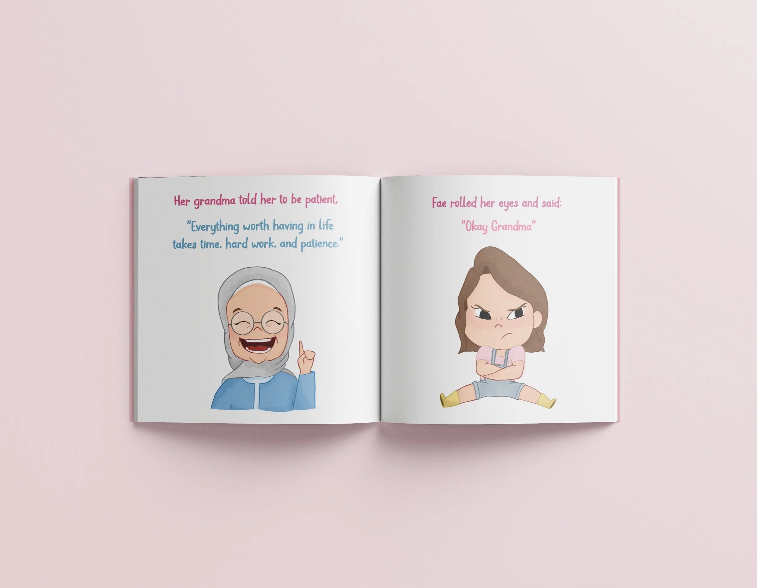 Creating culturally relatable characters for a given story to design and illustrate a children’s storybook. A story script was given to the class in both arabic and English and we were required to choose one language and create the scenes and add text to it.