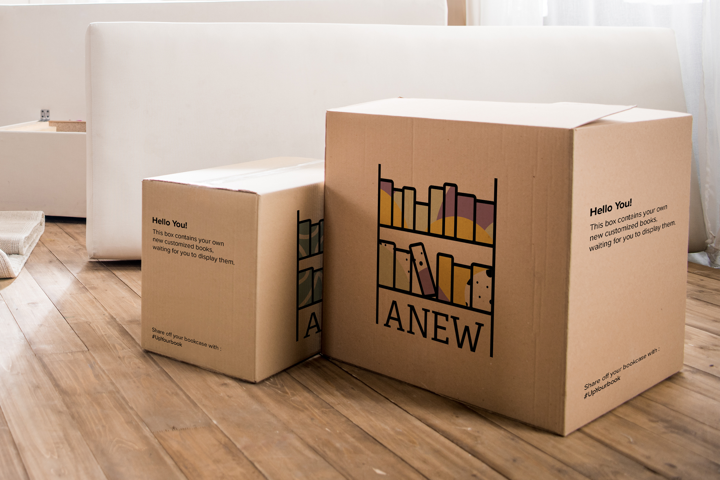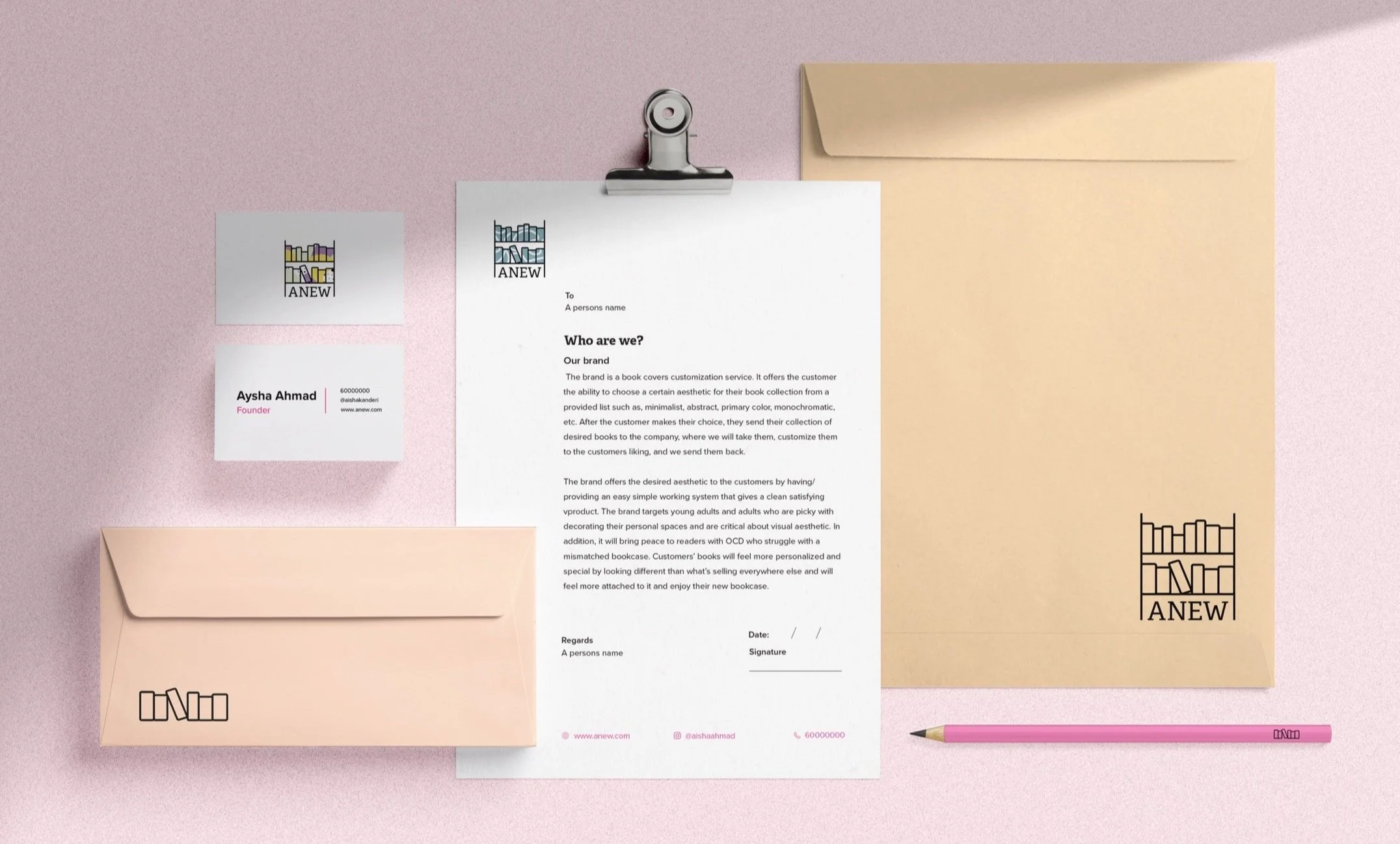 The brand is a book covers customization service. It offers the customer the ability to choose a certain aesthetic for their book collection from a provided list such as, minimalist, abstract, primary color based, monochromatic, etc. After the customer makes a choice, they send their collection of desired books to us, where we will take them, customize them to the customers liking, and send them back. The brand offers the desired aesthetic to the customers by having/ providing an easy simple working system that gives a clean satisfying end product. The brand targets young adults and adults who are picky with decorating their personal spaces and are critical about visual aesthetic. In addition, it will bring peace to readers with OCD who struggle with a mismatched bookcase. Customers’ books will feel more personalized and special by looking different than what’s selling everywhere else and will feel more attached to it.